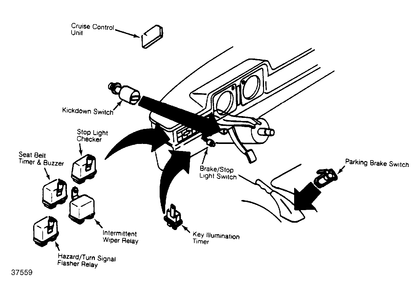 | Cruise Control Unit | Under left side of instrument panel. See Figure . |