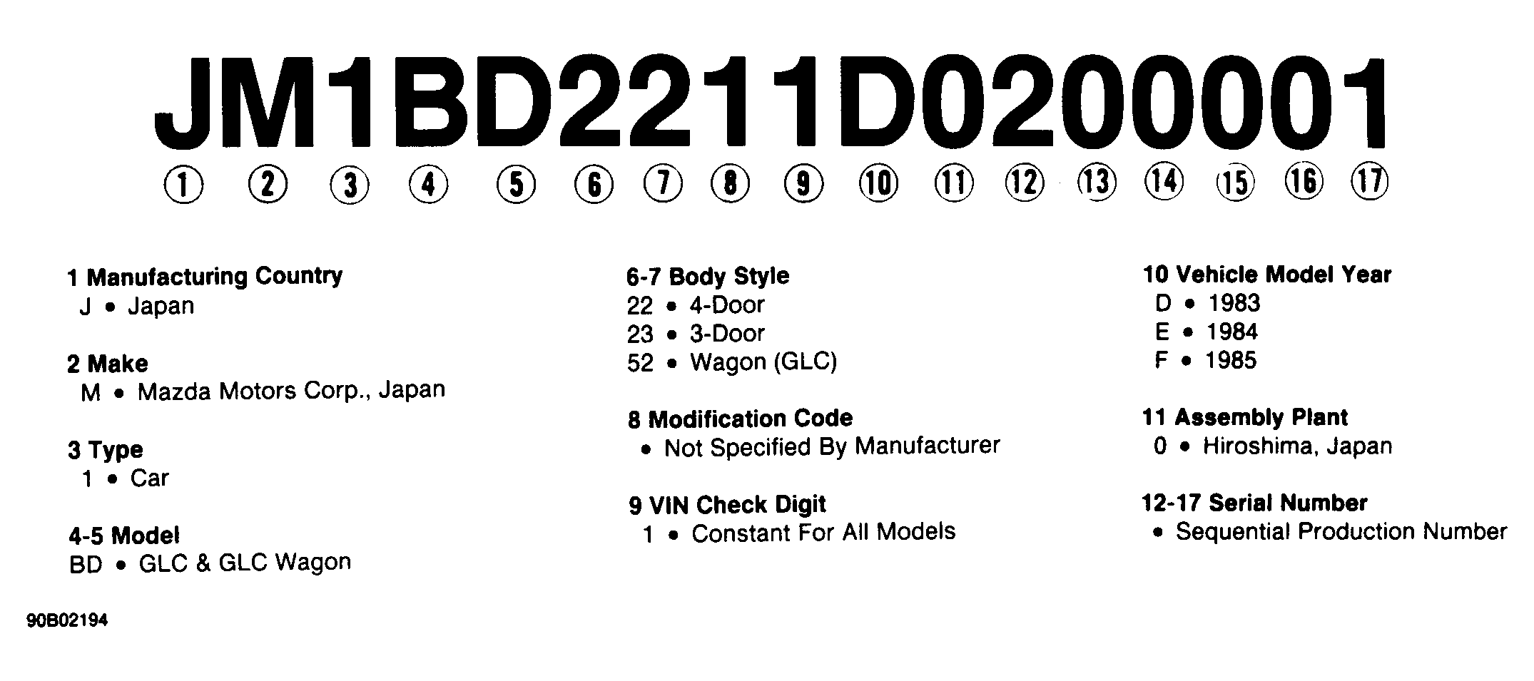 Home >> Mazda >> 1984 >> GLC 2D Hatchback >> Repair and Diagnosis >> Engine Performance >> Application >> Engine/VIN Id >> Model Identification >> VIN Code Id Explanation