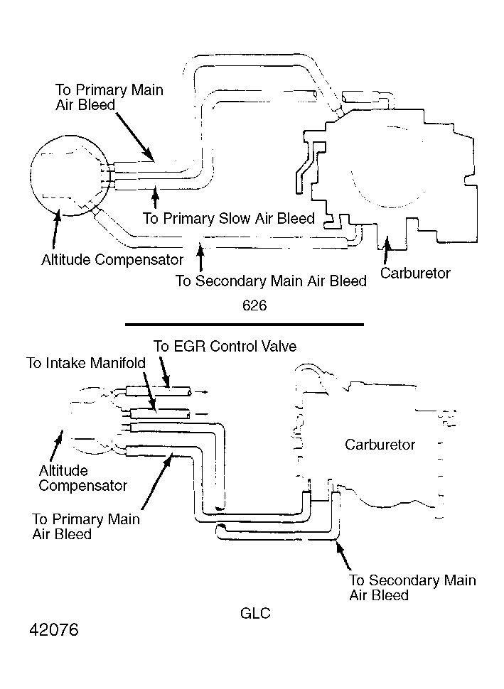 At altitudes of 3609 ft. (1100 m) or above, the altitude compensator passages should be blocked. The air passages should be open at lower elevations. See Fig 1.