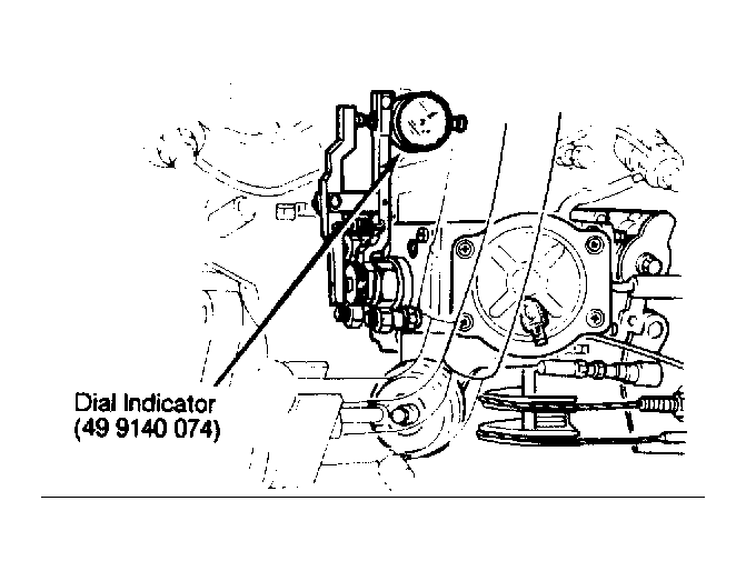 2. Mount Dial Indicator (49 9140 074) into plug hole on hydraulic head. Tip of dial's pointer should touch plunger end of pump and dial should indicate .08" (2.0 mm). See Fig 1 . In order to mount dial indicator, delivery valve should be removed as an assembly. When reinstalling, use new gasket.