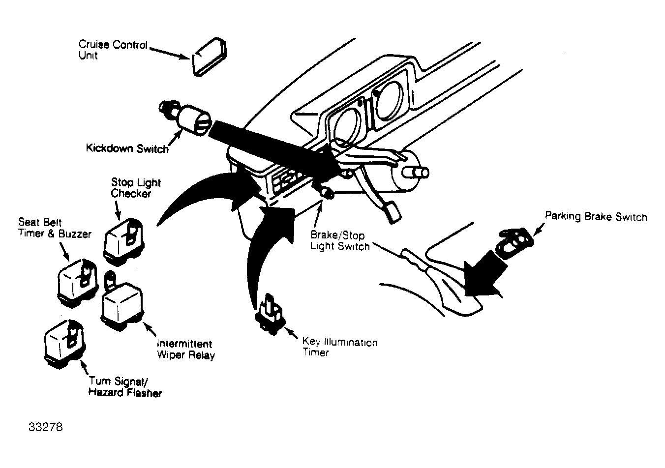 | Cruise Control Unit | Under left side of instrument panel. See Figure . |