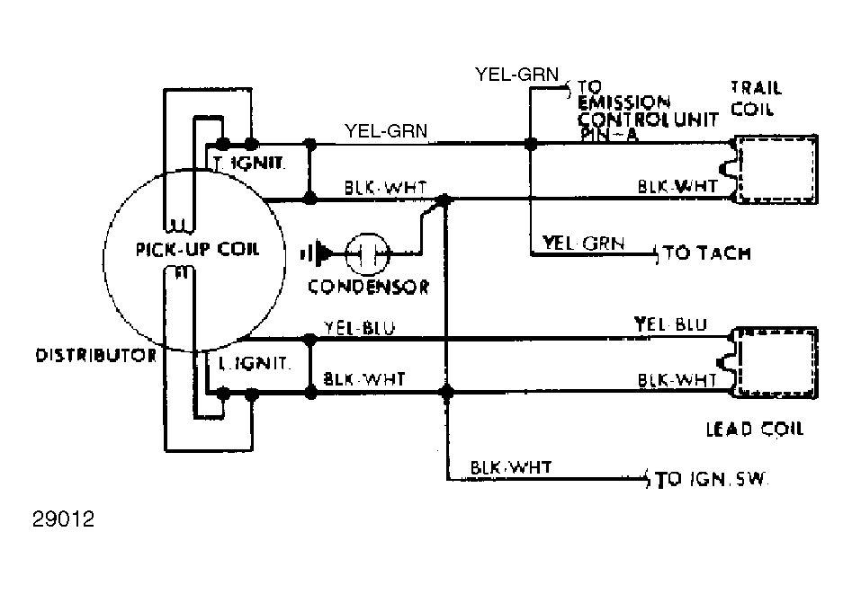 There are 2 separate igniters, mounted externally on the distributor housing. One is for the leading side and the other for the trailing side. Other system components include a battery, ignition switch, ignition control switches, (water temperature, altitude, etc.), and various relays.