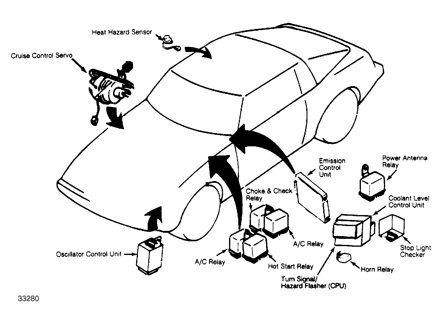 | Emission Control Unit | Below left side of instrument panel. See Figure . |