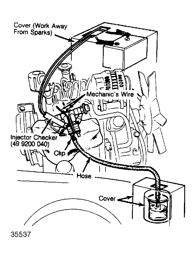 CAUTION: Be extremely careful when connecting injector checker to battery; always work away from sparks or open flames.
