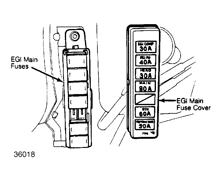 - If solenoid resistor checks satisfactory, check EGI main fuse located forward of left strut tower. See Fig 3