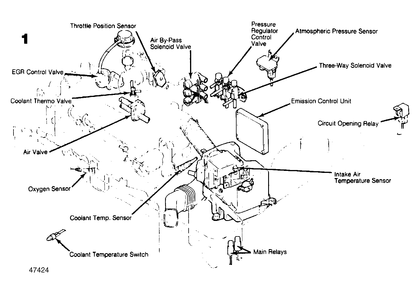 | Emission Control Unit (ECU) | Under center of dash. See Figure & Figure . |