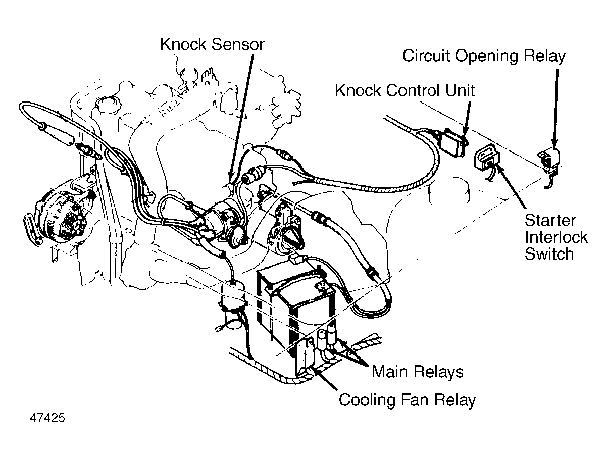 | Knock Control Unit | On left side of firewall. See Figure . |