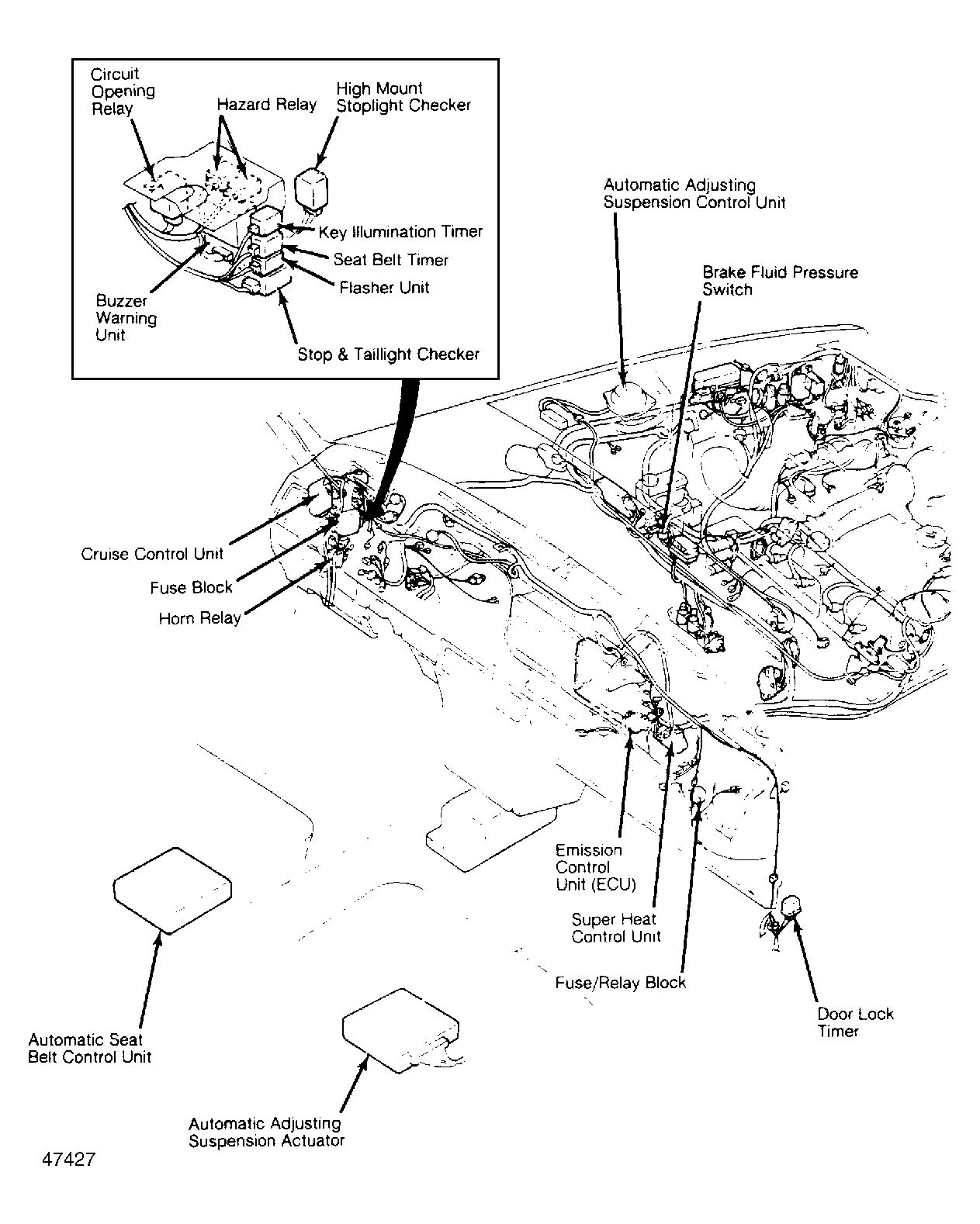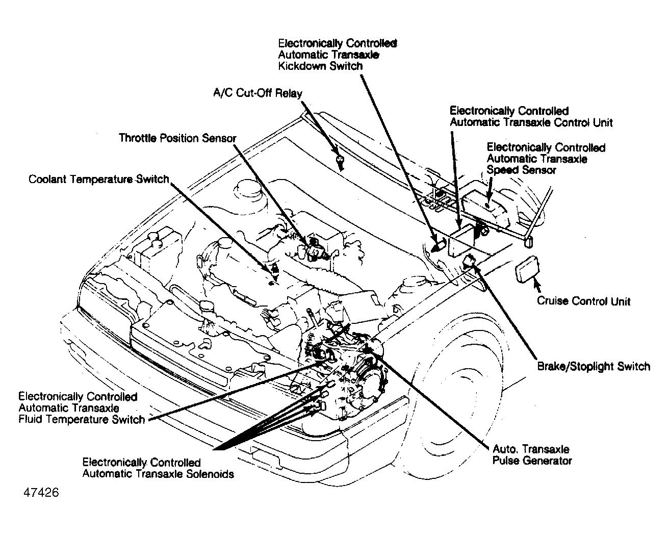 | Electronically Controlled Automatic Transaxle Control Unit | Under left side of dash. See Figure . |