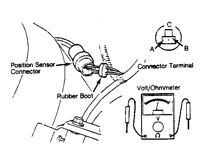 Bring engine to normal operating temperature and run at idle. Disconnect EGR position sensor connector. Using a circuit tester, ensure the resistance is within the specifications. See Fig 1 . See TERMINAL RESISTANCE SPECIFICATION  table. If resistance is not within specifications, replace EGR position sensor.