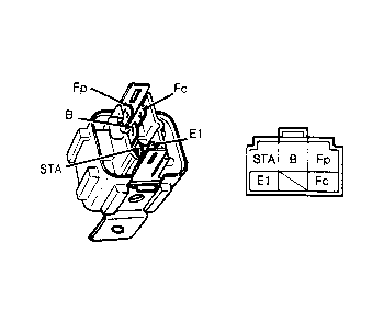 2. With circuit opening relay removed, apply 12 volts to terminal STA of relay. Ground terminal E1. Ensure continuity from relay terminals B to FP.