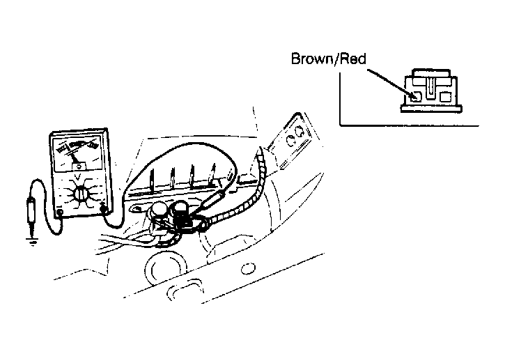 - Connect voltmeter between Brown/Red solenoid wire and ground. With engine temperature less than 131°F (55°C), voltage should be 12 volts. With engine temperature greater than 131°F (55°C) and engine RPM less than 900, voltage should be 12 volts. With engine warm and engine RPM greater than 900, voltage should be less than 2.5 volts. See Fig 1