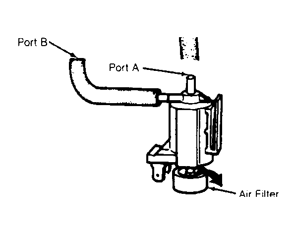 - Disconnect vacuum hoses from solenoid. Blow through port B. Ensure air exhaust through air filter.