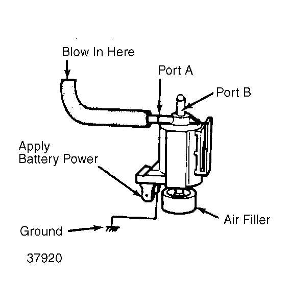 - Disconnect electrical connector and apply battery voltage to valve terminals. Blow air in port "B", air should exit at port "A".