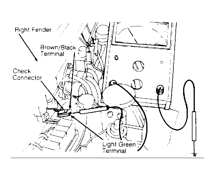 - Bring engine to normal operating temperature and run at idle. Disconnect neutral switch connector. Connect a voltmeter to the Brown/Black wire side of check connector. Ensure voltmeter reads 12 volts. See Figure .