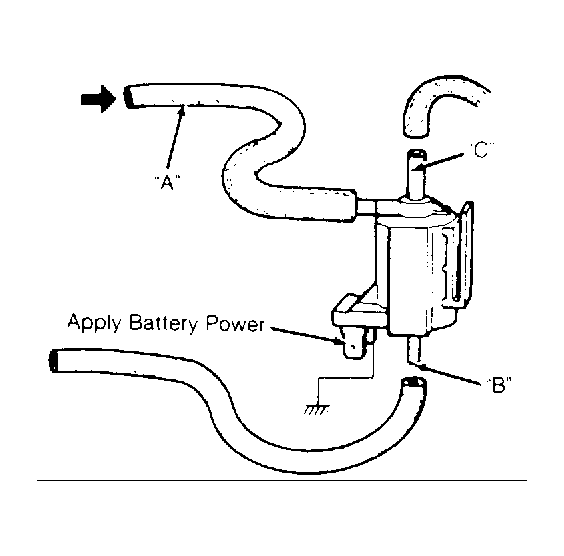 - Connect voltmeter to Green wire (terminal "F") of distributor vacuum solenoid valve connector. See Fig 1