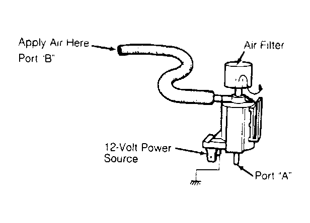 1. Disconnect vacuum hoses from solenoid valve. Blow through port "B". See Fig 1 . Air should flow from air filter. Remove connector from solenoid valve.