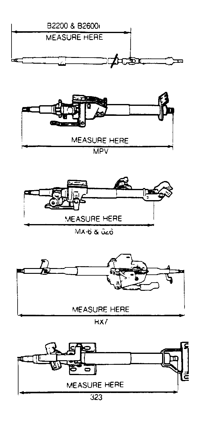 Check all components for damage or wear. Check steering shaft for bends, damage or sheared plastic pins. Check bearings for excessive play. Replace parts as necessary. Measure length of steering shaft. See Figure .