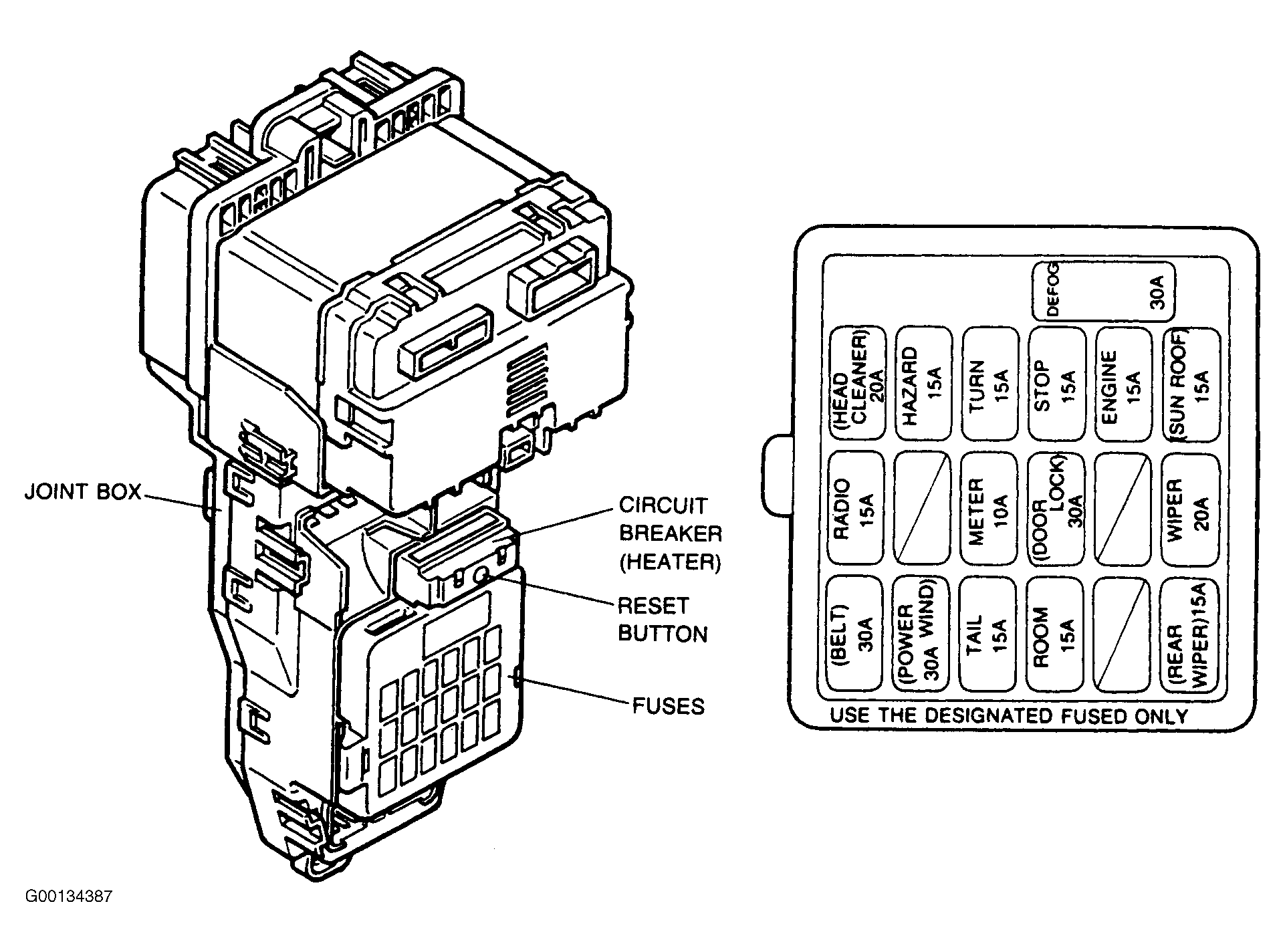 | Fuse Panel (Joint Box) | Below Left Side Of Instrument Panel. See Fig 1 . |