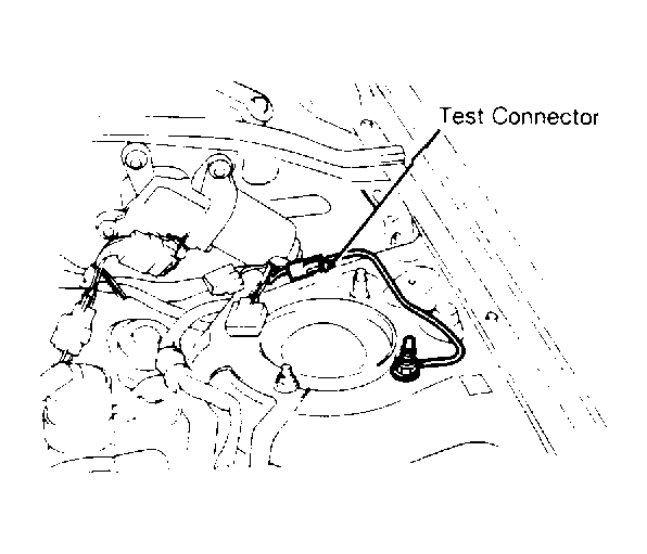 - On all except carbureted B2200, connect jumper wire between timing test connector and ground. See Fig 1