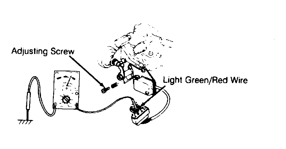 - Warm engine to normal operating temperature and run engine at idle speed. Connect tachometer to engine. Connect voltmeter to Light Green/Red wire terminal of idle switch. See Fig 1 .