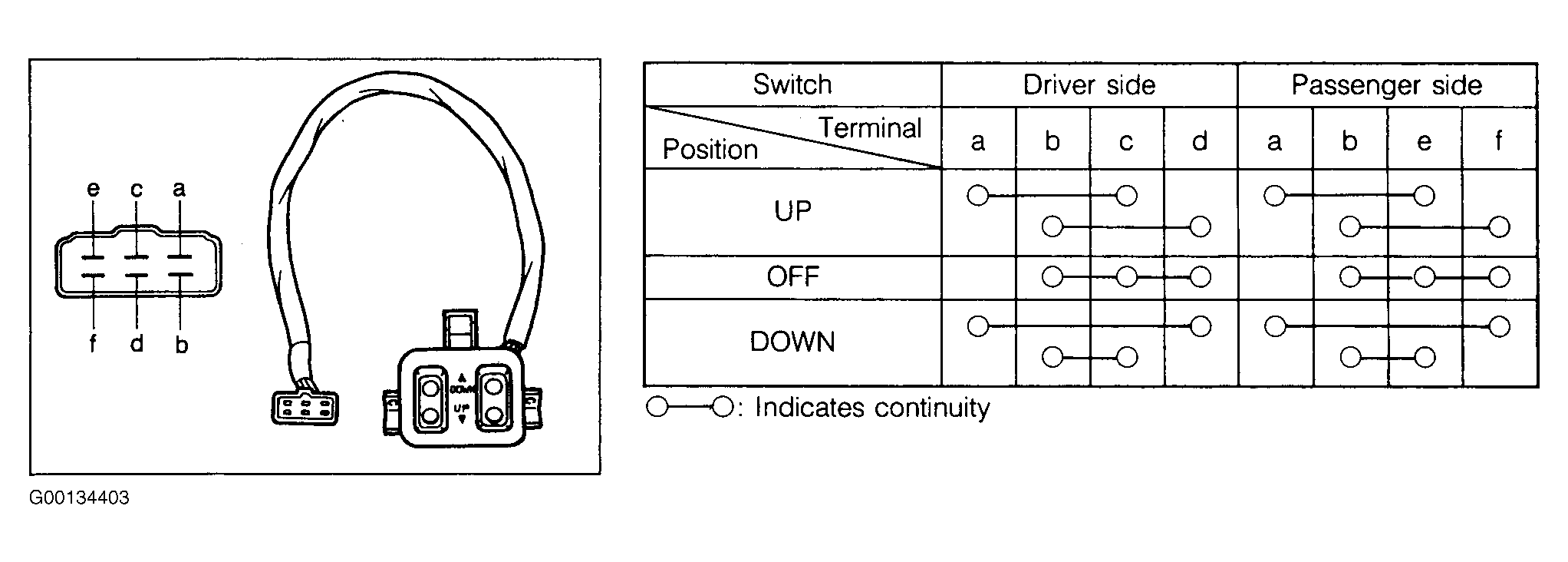 Check for continuity between terminals of the switch with an ohmmeter as specified. See