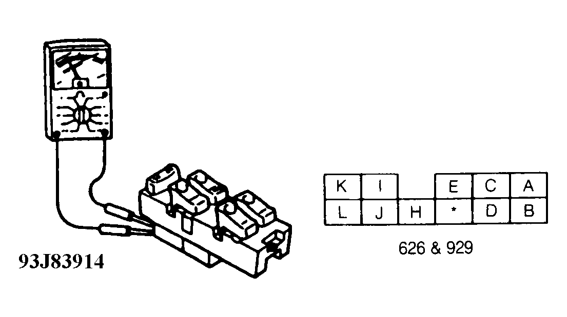 Disconnect main switch connector. Check continuity across specified terminals of main switch connector with main switch button held in specified position. See MAIN SWITCH CONTINUITY TEST table. See Fig 1 . Replace main switch if continuity is not as specified.