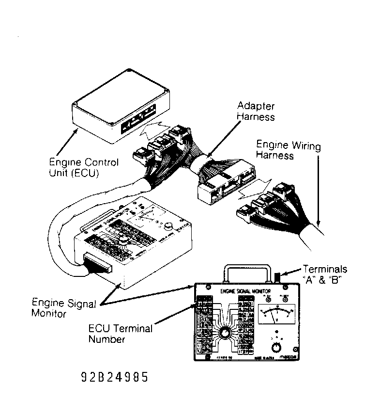 DO NOT apply voltage to terminals "A" and "B" of engine signal monitor. See Fig 1