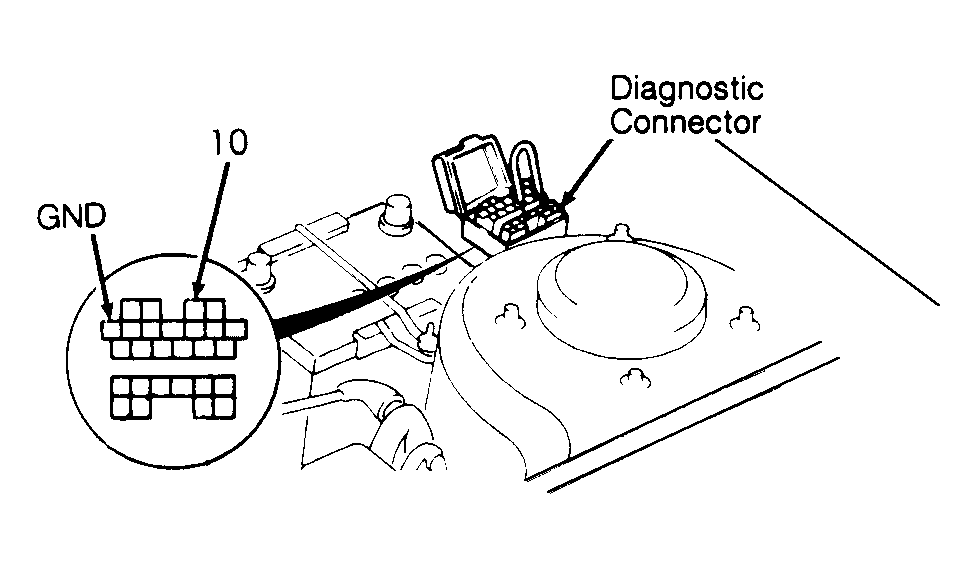 - Connect jumper wire between terminals TEN and GND. Diagnostic connector is located at left front wheelwell. See Fig 1 .