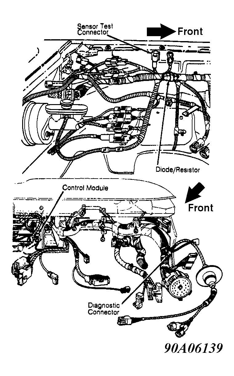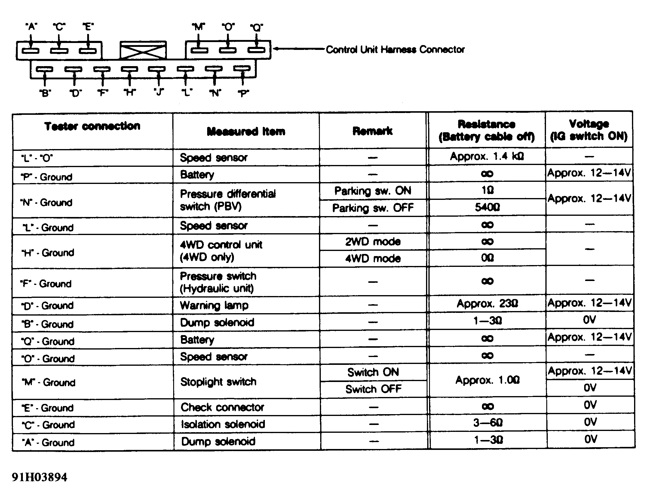 When checking resistance at control unit terminals, always disconnect negative battery cable.