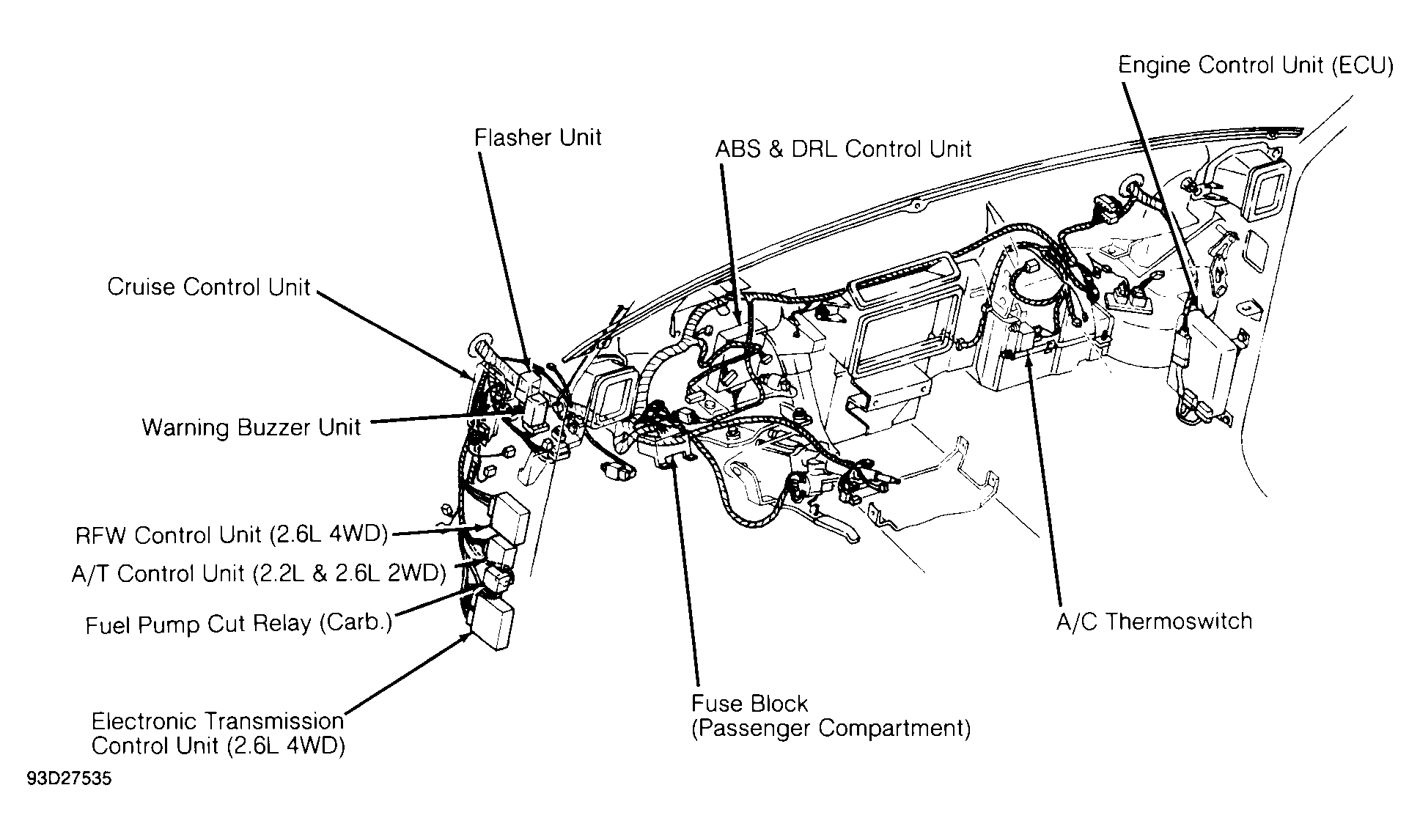 | Electronic Transmission Control Unit (4WD) | Behind left kick panel. See Figure . |