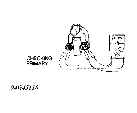 - Remove primary and secondary leads from ignition coil. Using ohmmeter, check primary resistance between positive and negative terminals of coil. See Fig 1 . Resistance should be as specified in IGNITION COIL RESISTANCE table. If resistance is not as specified, replace ignition coil.