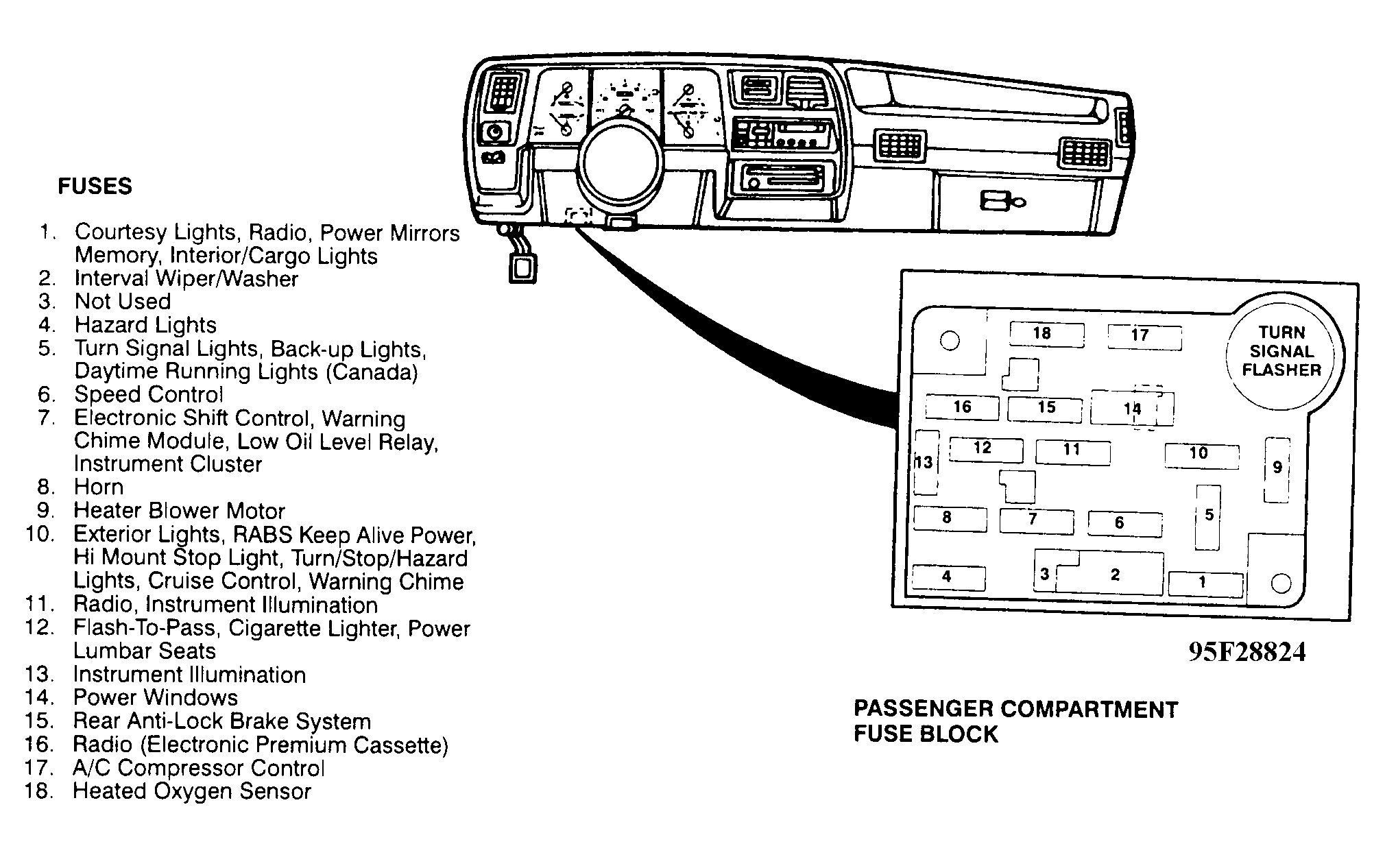 | Passenger Compartment Fuse Block (Location) | Behind left side of dash, near kick panel. See Figure . |