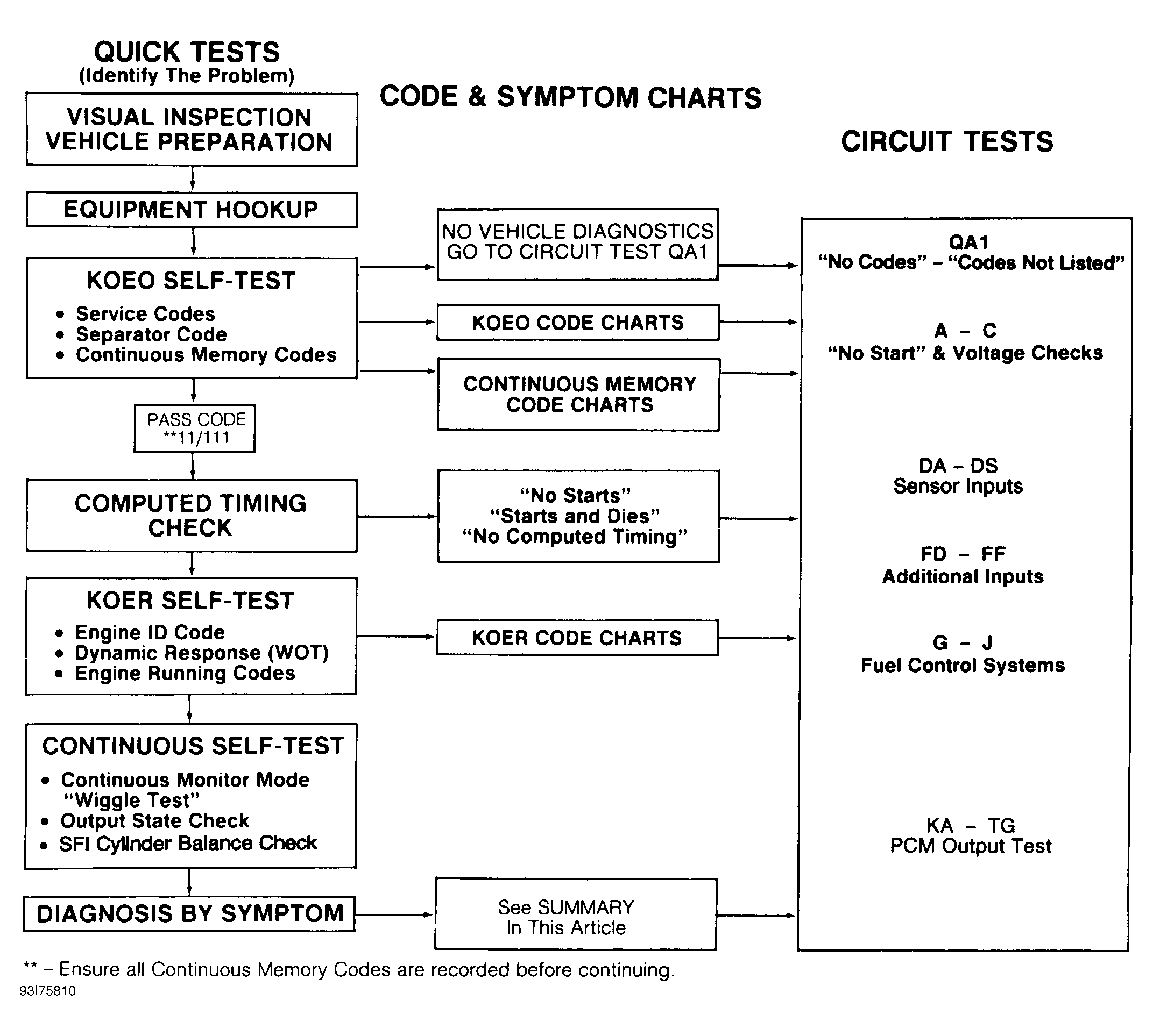 Following procedures are functional tests of EEC-IV system. See Figure. These 5 basic test steps must be carefully followed in sequence to avoid misdiagnosis or replacement of non-faulty components.