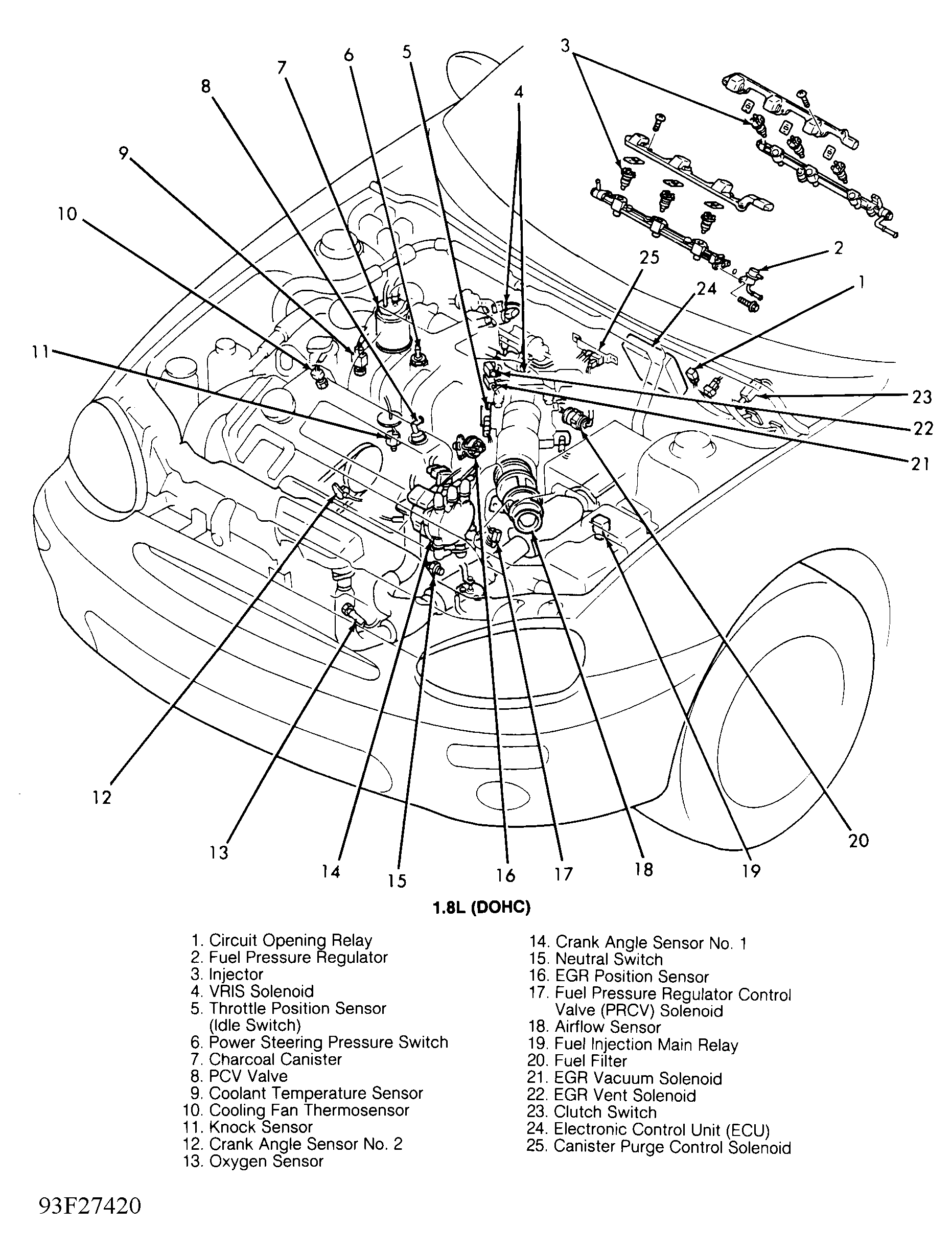 | ECU (DOHC) Electronic Control Unit | Behind center of dash. See Figure . |