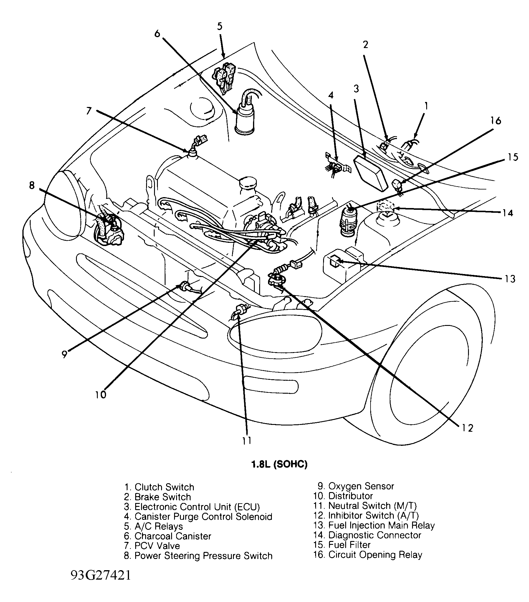 | ECU (SOHC) Electronic Control Unit | Behind center of dash. See Figure . |