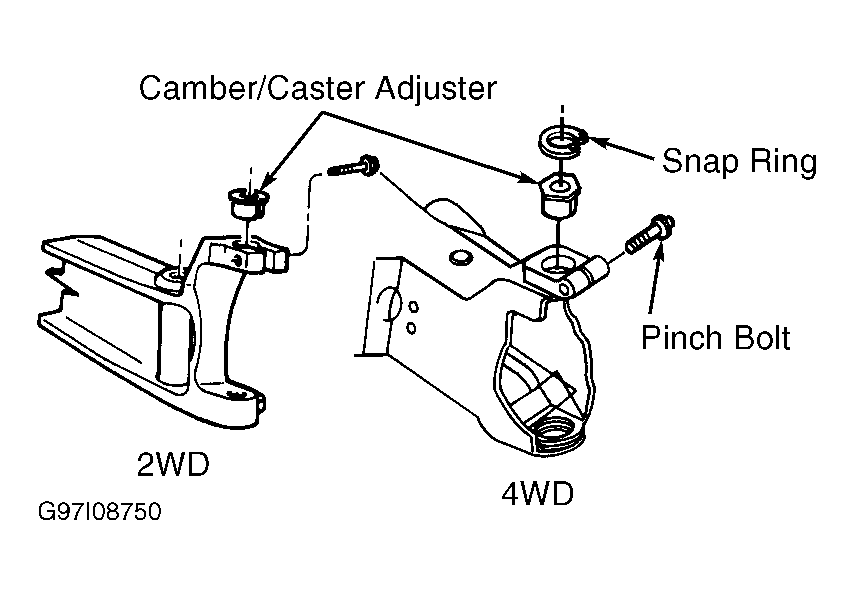 - Remove pinch bolt and camber/caster adjuster from front axle. See Fig 1