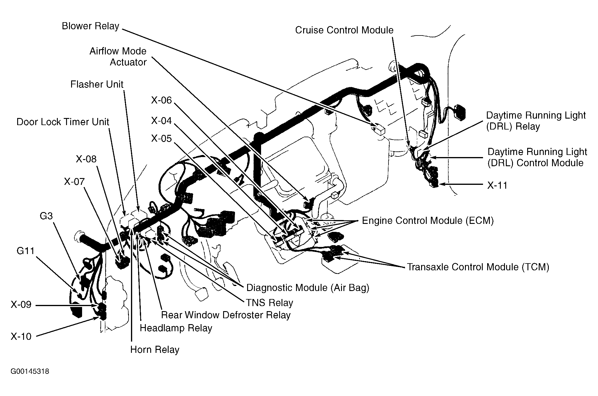 Daytime Running Lamp (DRL) Control Module Behind right kick panel. See Figure .
