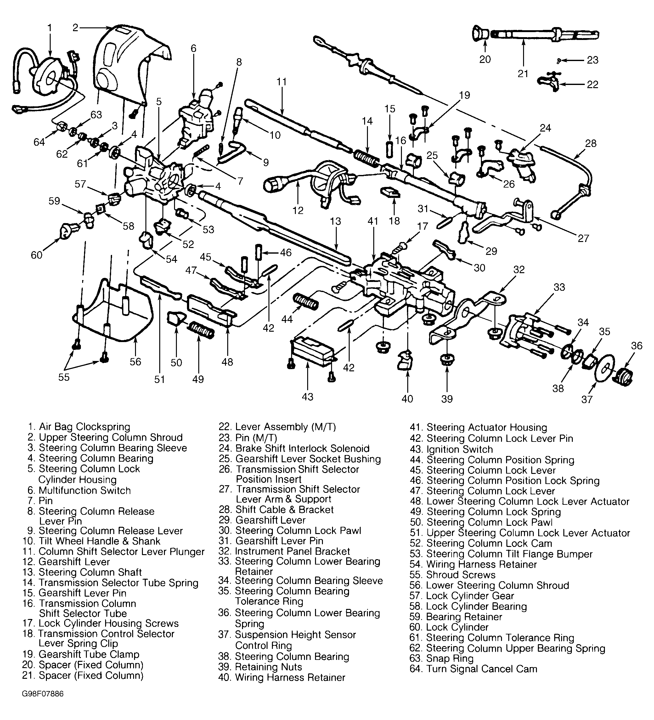 Fig 2: Exploded View Of Steering Column (1998)