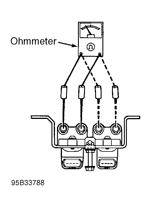 - Check coil case insulation resistance. Remove leads and disconnect connectors. Using an ohmmeter, measure insulation resistance between coil positive terminal and coil case. See Fig 1