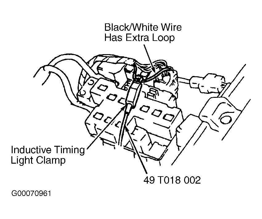 NOTE: Standard inductive timing light may not work on ignition timing checking harness. Recommend using manufacturers Inductive Timing Light (49-T018-002) or equivalent