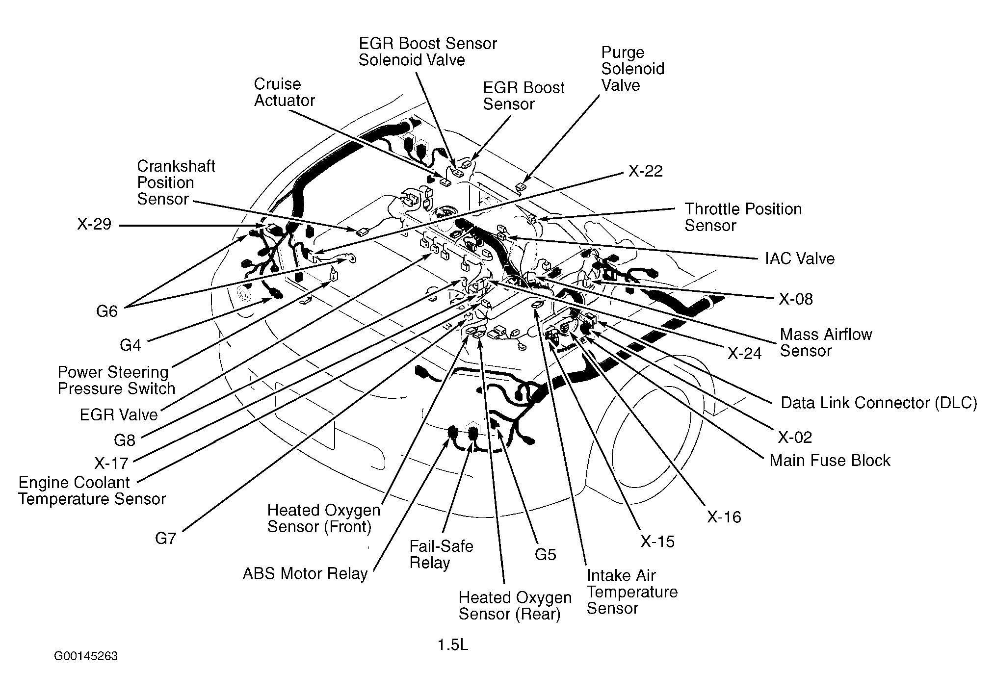 Main Fuse Block (1.5L) On left front inner fender panel. See Figure .