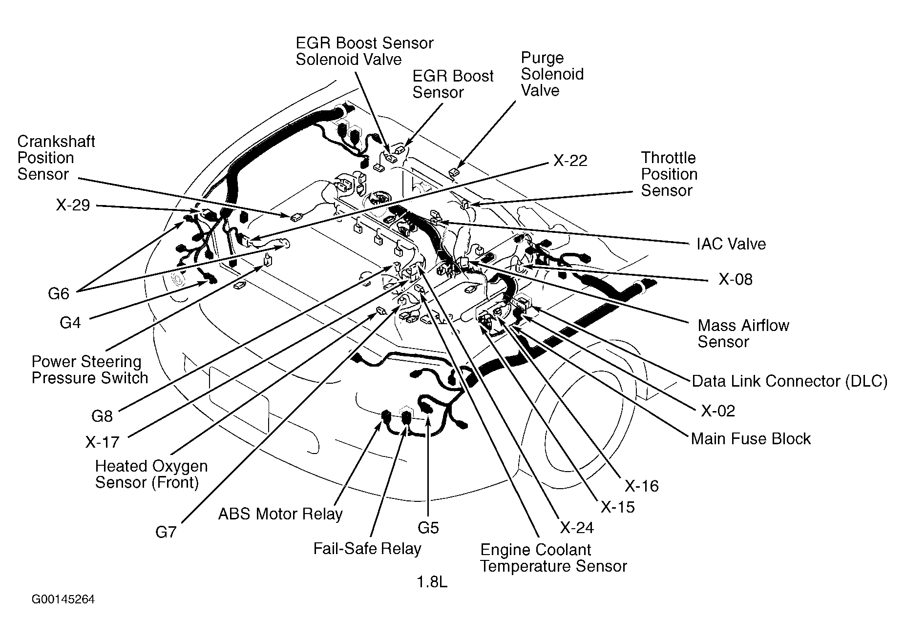 Main Fuse Block (1.8L) On left front inner fender panel. See Figure .