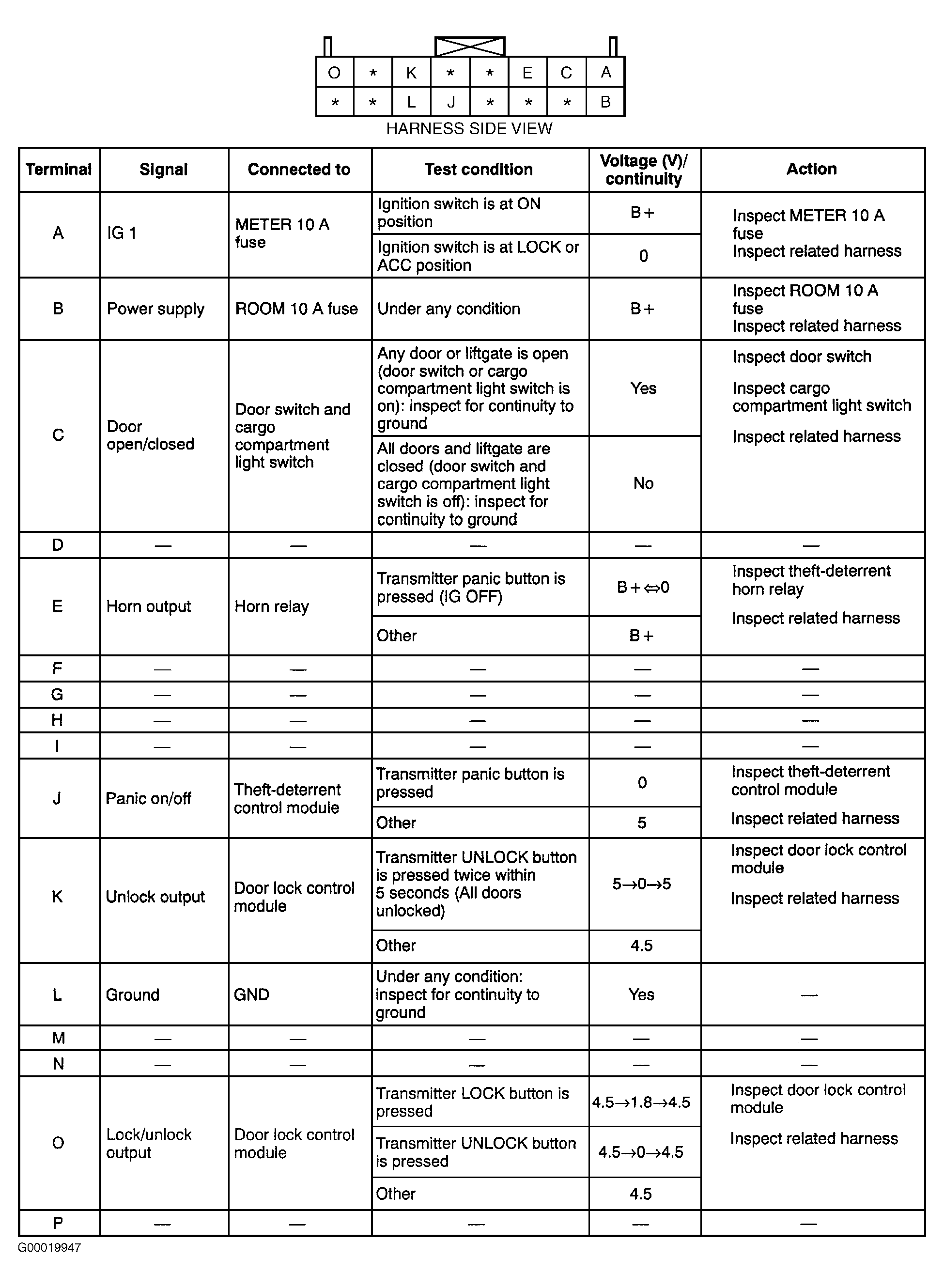 Home >> Mazda >> 2000 >> MPV DX >> Repair and Diagnosis (Single Page) >> Body & Frame >> Door Locks >> Security & Locks >> Component Tests >> Keyless Control Module