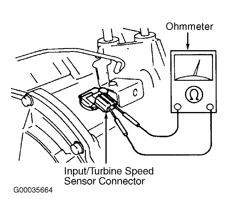 Disconnect input/turbine speed sensor connector. Measure resistance between input/turbine speed sensor terminals. Resistance should be 253-604 ohms. See Fig 1. If resistance is within specification, sensor is okay. If resistance is not within specification, replace sensor.