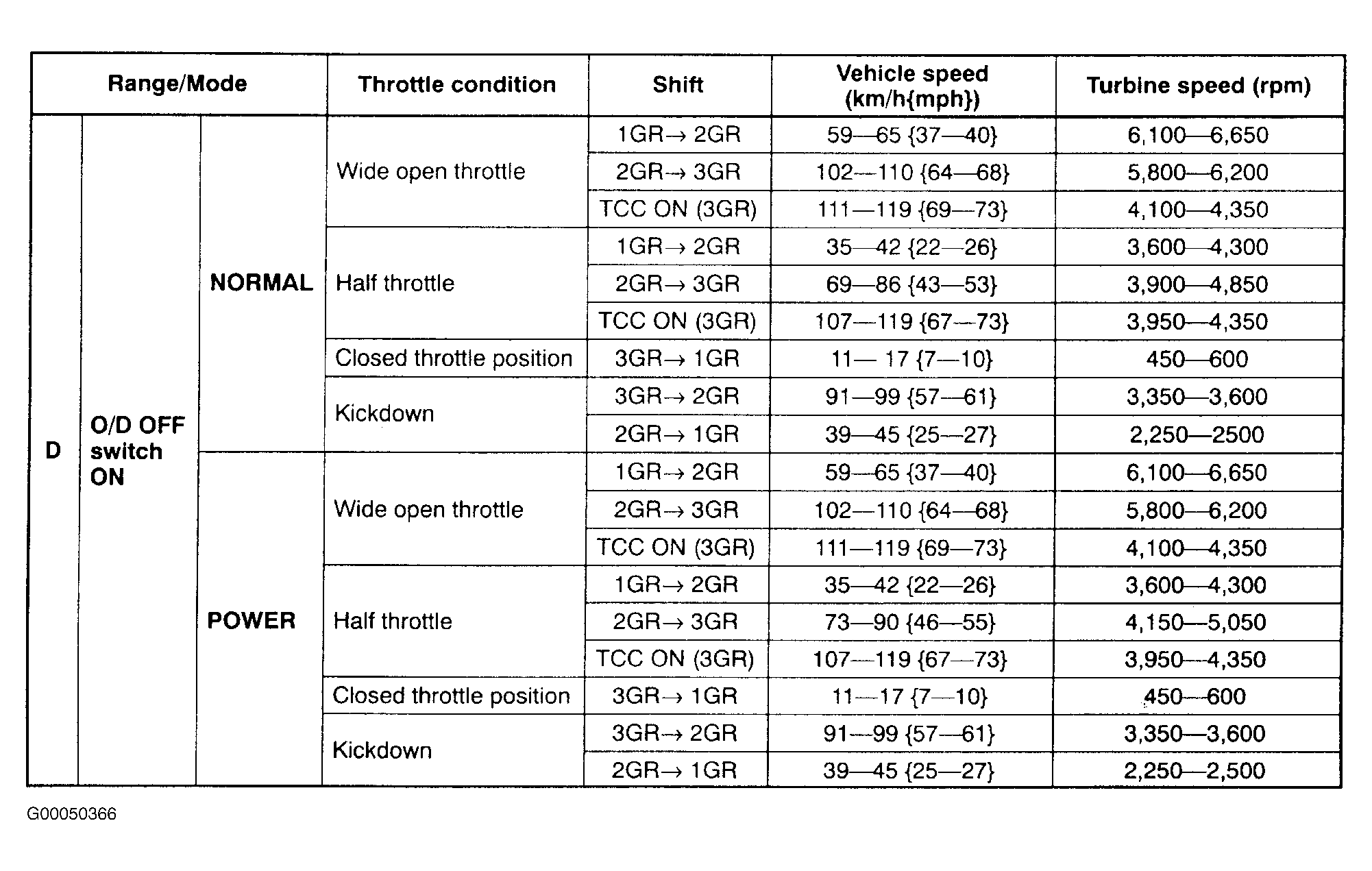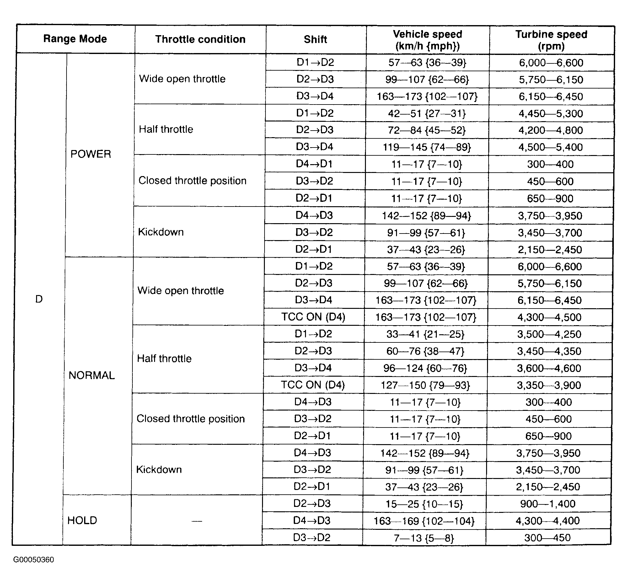 Fig 4: Shift Speed Specifications (MPV - "D" Ranges - 2 Of 3)