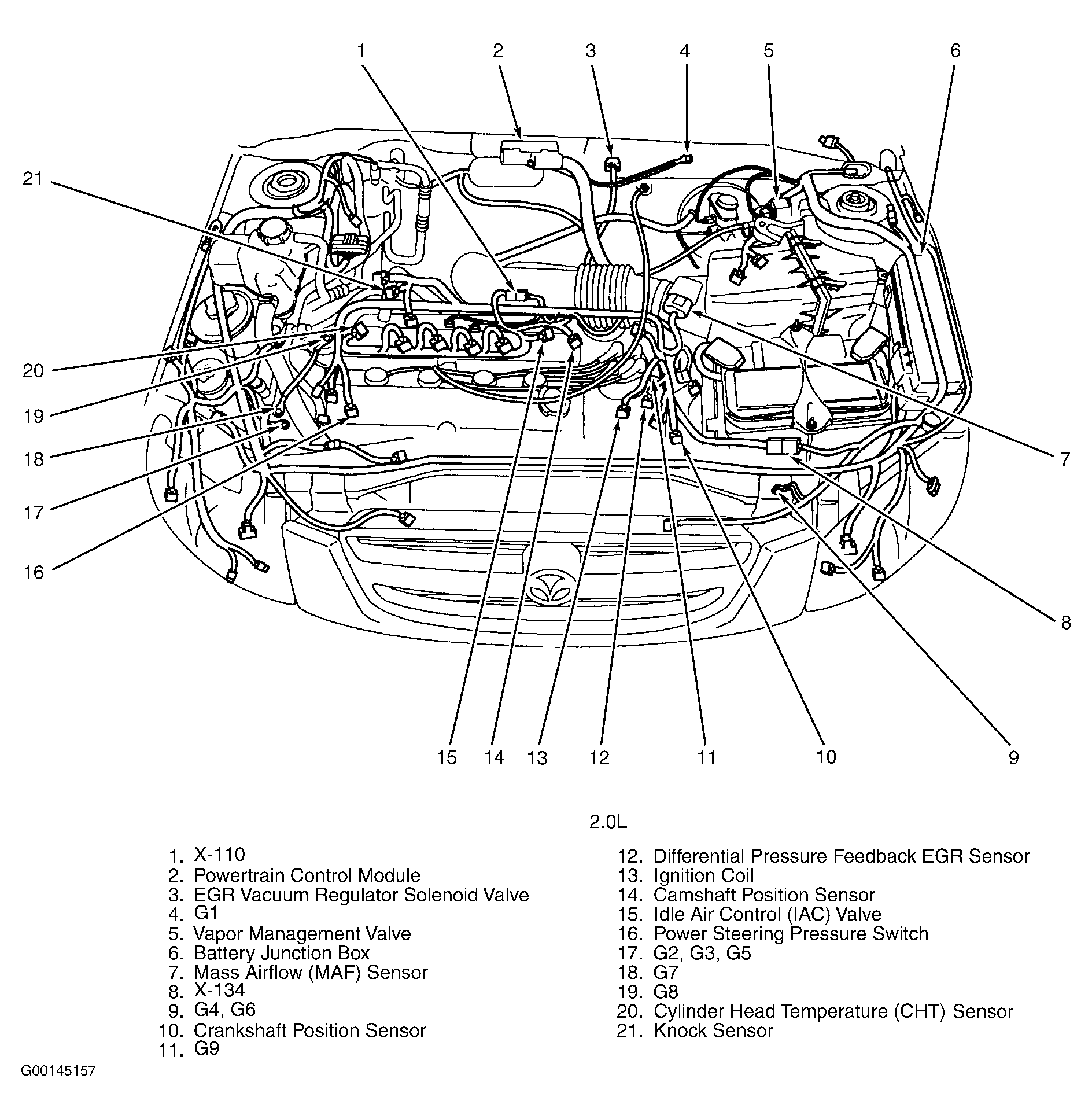 | Powertrain Control Module (2.0L) | In recess on upper center of firewall. See Figure . |