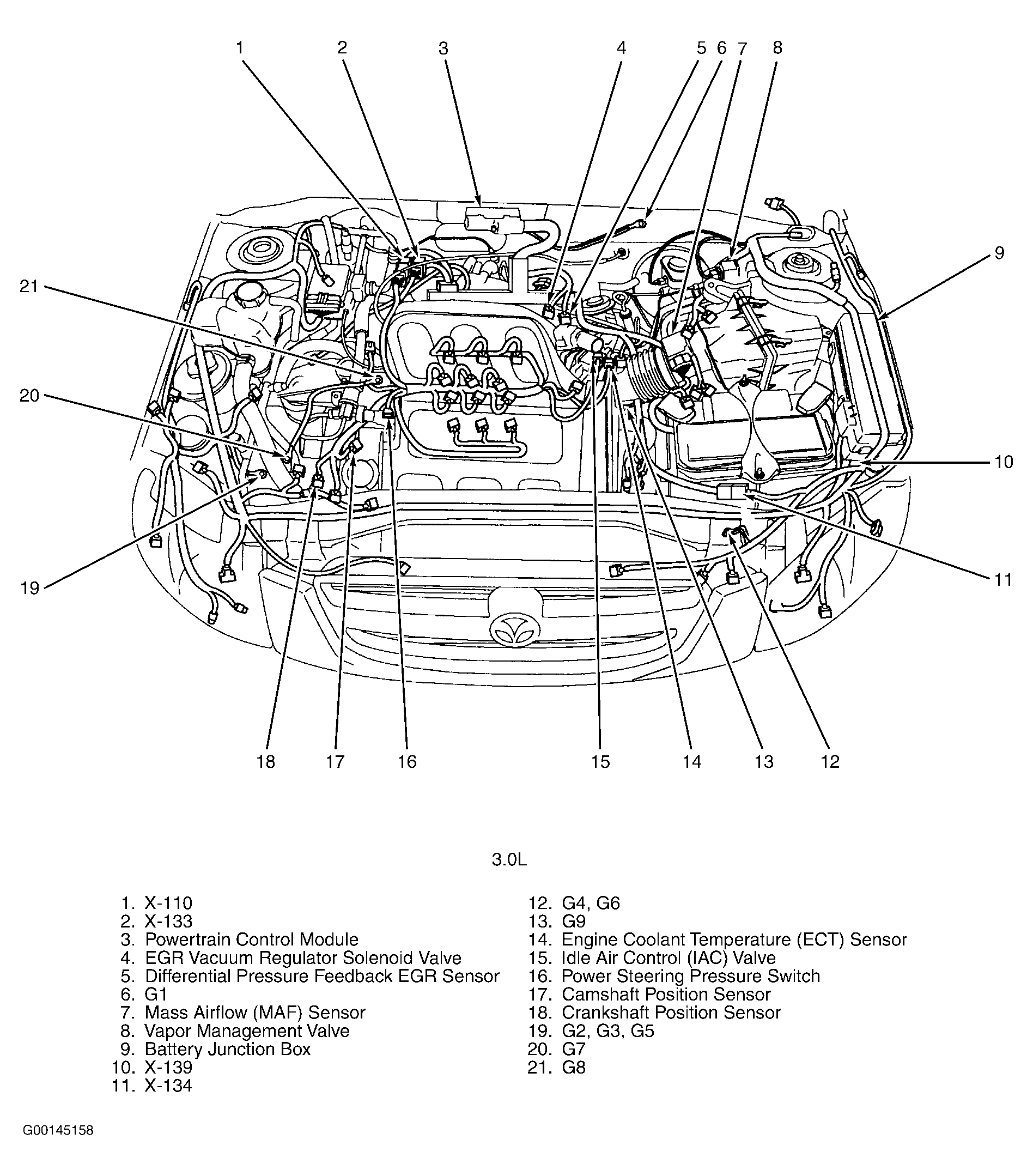 | Powertrain Control Module (3.0L) | In recess on upper center of firewall. See Figure . |