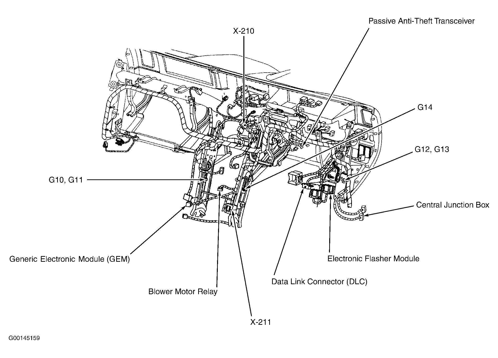 | Passive Anti-Theft Transceiver | Behind lower left side of dash, near steering column. See Figure . |