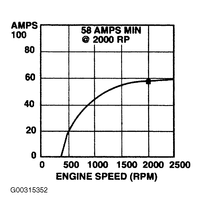 - With engine running at 2000 RPM, monitor generator amperage output. See Fig 1 . If generator output is 58 amps or more at 2000 RPM, generator is operating normally. If generator output is not 58 amps at 2000 RPM, replace generator. See GENERATOR under REMOVAL & INSTALLATION.