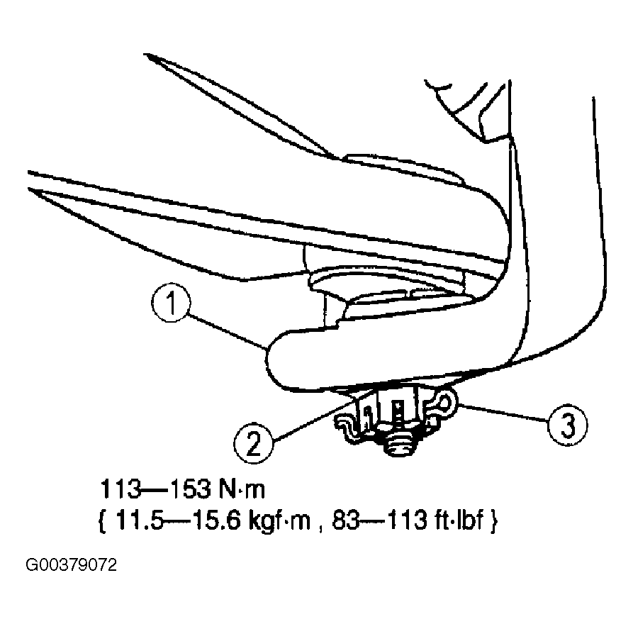 - Install the front shock absorber and the two lower nuts. See Figure .